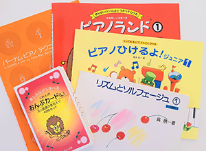 当教室の幼児レッスンでは、リズム遊びやうた、カードなどを使いながら、音楽の土台を楽しく育てていきます。